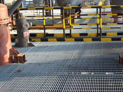 化工廠用鋼格板 鋼格板是用承載扁鋼和橫桿按照一定的間距進(jìn)行正交組合,通過焊接或壓鎖加以固定的開敞式鋼構(gòu)件;橫桿一般采用經(jīng)過扭絞的方鋼、也可采用圓鋼或扁鋼,材質(zhì)分為碳鋼和不銹鋼鋼格板主要用來做鋼結(jié)構(gòu)平臺(tái)板、溝蓋板、鋼梯的踏步板、建筑物吊頂?shù)取? 簡介 ···